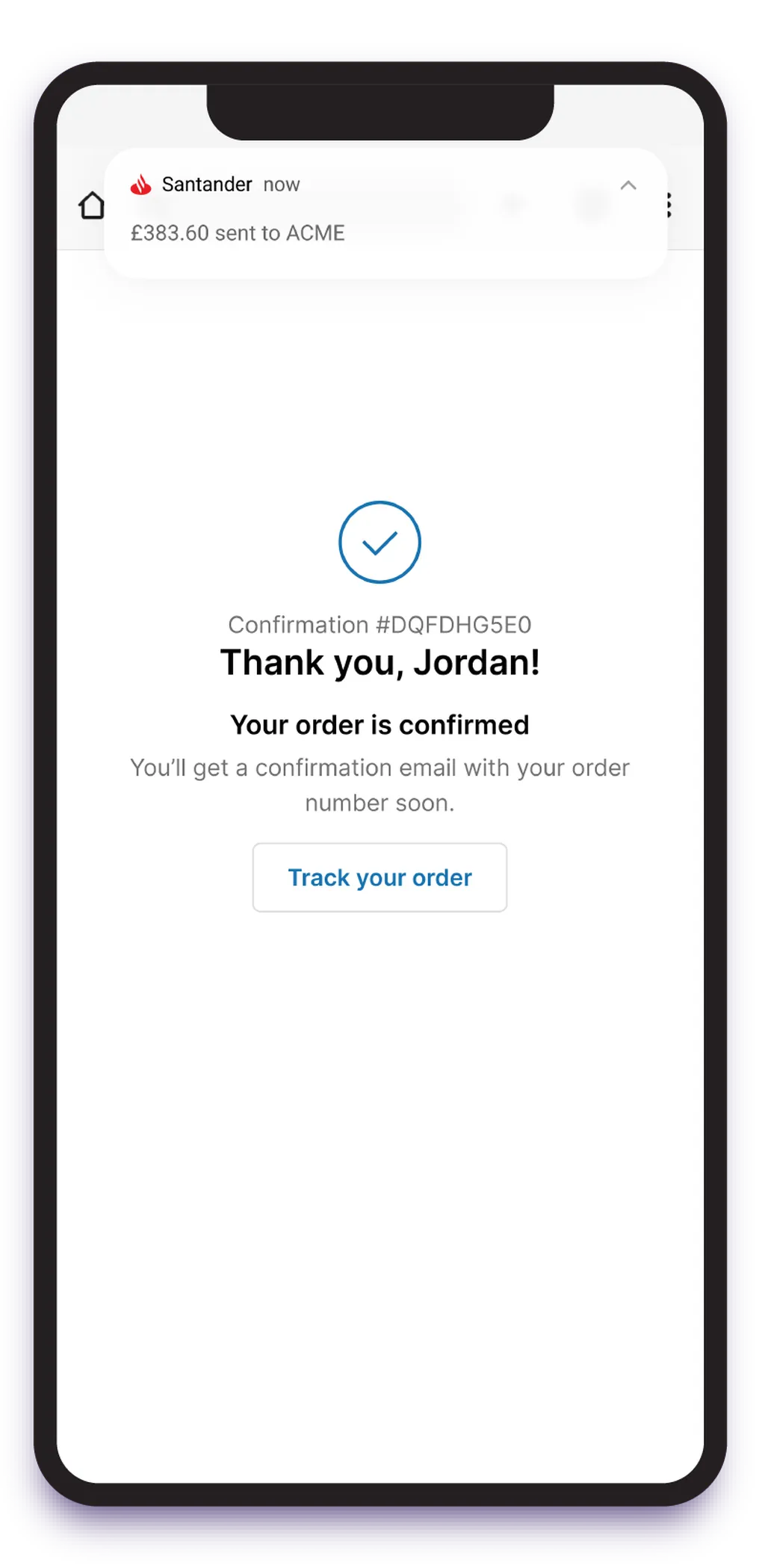 The payment is confirmed, and the user is auto-redirected back to your app or website to continue what they were doing or get payment confirmation.
